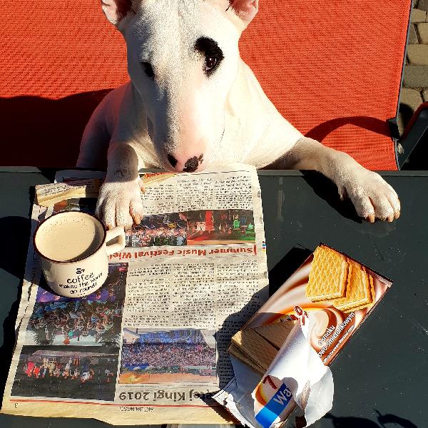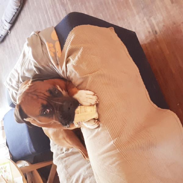 Dziunia jest najfajniejszym pieskiem na świecie, ponieważ rano, gdy ja i mój chłopak jeszcze śpimy, czeka aż wstaniemy. Potrafi się patrzeć na nas godzinami, tylko po to, żebyśmy się już z nią pobawili. Ma najsłodszy wzrok na świecie. Mimo tego , ze nie widzi na jedno oko , ma w tym spojrzeniu tyle miłości i wierności. Została zabrana z pseudo hodowli, gdzie jako szczeniak spała w starej stodole. Każdego dnia okazuje nam wdzięczność za to, ze jesteśmy obok niej. Wszyscy ją kochają, najbardziej ja ❤️ Jej ulubionym zajęciem jest jedzenie i gryzienie drewna