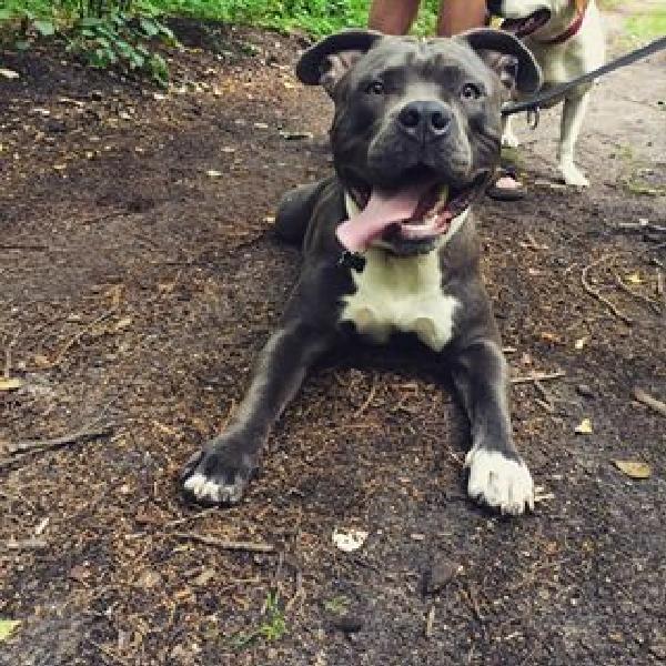 Drako. Swoim kochanym charakterem pokazuje, że rasa amstaff kojarzona bardzo źle, jednak może być grzeczna i wspaniała. Jest bardzo aktywny na spacerach i jednocześnie baaardzo leniwy, zwłaszcza o poranku ;) Optymalna godzina pierwszego spacerku to południe, przy próbie wyciągnięcia go rano trzeba poświęcić trochę czasu, "kruszynka" wcale nie współpracuje. Uwaga, może zalizać na śmierć :D