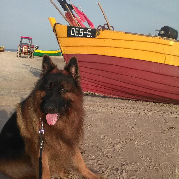 Mój pies 5 letni owczarek niemiecki towarzyszy mi 24 godziny dzien w dzien. Spędzamy razem czas, chodzimy na spacery, wyjezdzamy do hoteli na wakacje .Robimy razem zakupy po prostu jestesmy nierozłączni. Suerte czyli Szczęście tak na na imię .Caly czas dzięki niemu moje życie jest radosne, pełne jego pomysłów i wielkiego czarnego nochala ktorym się zawsze przytula. Jest bardzo towarzyski i zawsze jest przy mnie zarowno w wesołych i smutnych momentach. Tak więc zakupy, pływanie, fryzjer, nawet strzelnicę z ochronnymi sluchawkami tez zaliczył. . A jego postura ( poniewaz jak na owczarka ma 72 cm i waży 67 kg )i nozycowy zgryz co najmniej raz uratowały mnie z opresji..