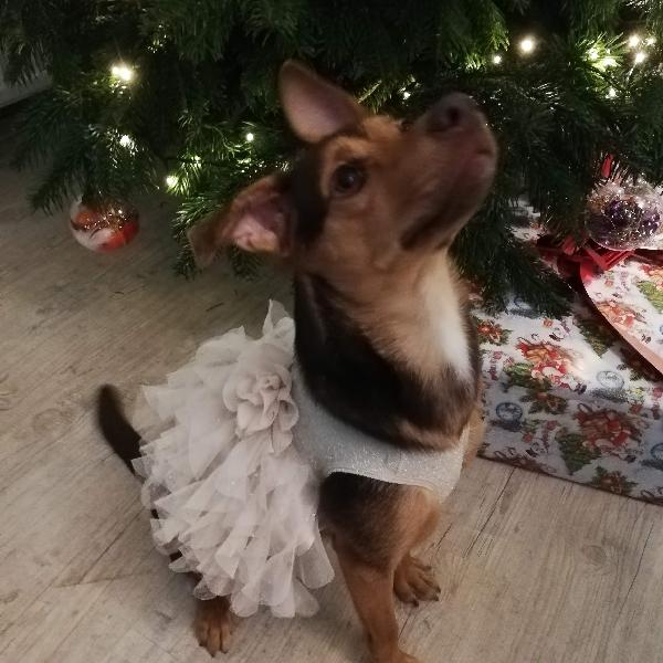 Kluska, jest połączeniem haosu i słodkości. Gdy była mała zżerała WSZYSTKIE buty, Boziuniu, nawet te boskie szpileczki od mamy z Włoch! Teraz już tylko te buty nosi do siebie, na szczęście! Sikała wszędzie, ale tak przepraszająco zamiatała ogonem, że podłogi były czyste. Skacze tak wysoko że przez to raz złamała sobie tylnią łapkę jednak nawet gips nie był w stanie spowolnić naszej Kluseczki, pędziła w nim niczym gepard! Pieseł nasz daje się stroić jednakże sprawdza później czy ubrania te są jadalne. Ostatnio Kluska miała szczeniaczki i była najlepszą mamą na świecie. Dostawała kawał mięsa i zamiast sama zjeść, nosiła je maluchom. Kłóciła się z nimi, uczyła ich manier i ... Wyprowadziła środkiem drogi na spacer po wiosce. Ot, krajoznawcza wycieczka! Teraz nasza Kotka ma maleństwa, Kluska pomaga jej je wychować. Z samego rana gdy tylko się obudzi biegnie je wylizać i nie opuszcza ich na krok. Kocha te puszyste kuleczki. Poza tym Klusia zna sztuczki, zawsze się uśmiecha, kocha wszystkie zwierzęta i ludzi i nie sposób się nie zakochać w jej czekoladowo-karmelowych oczach.